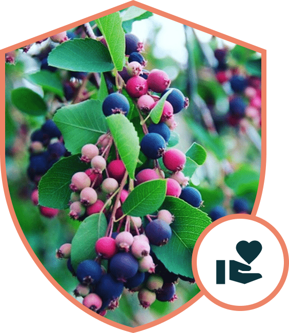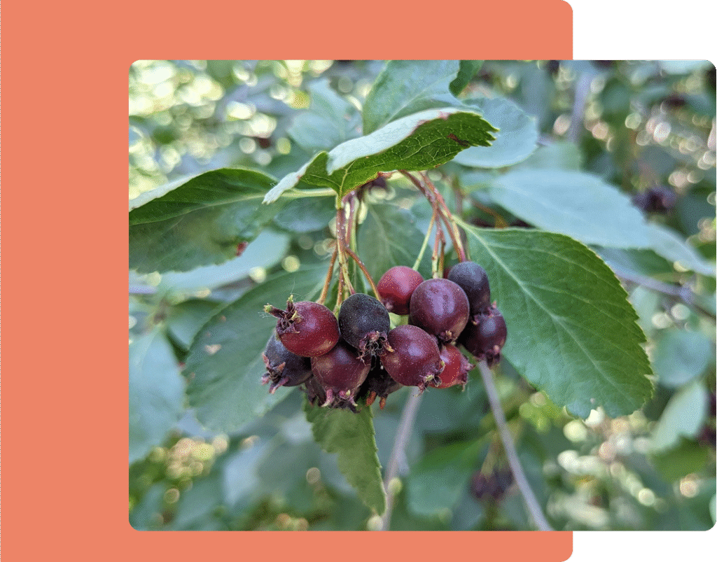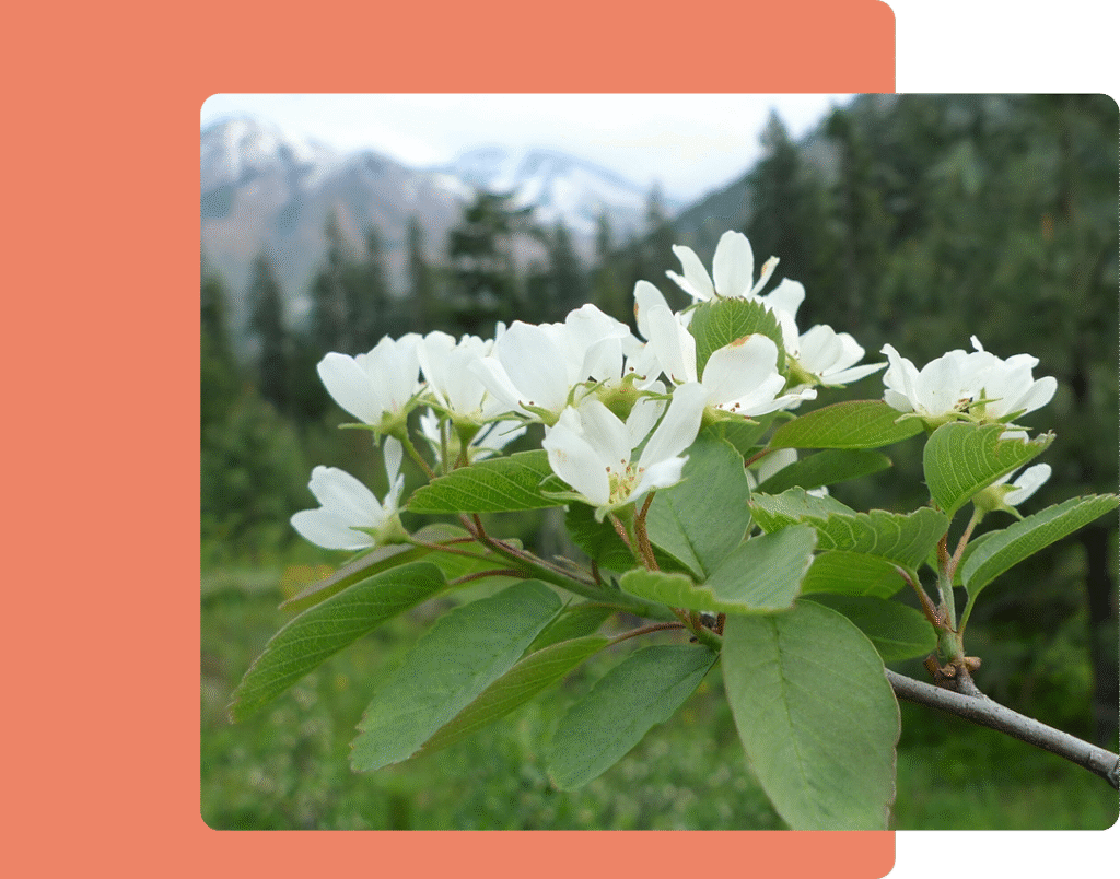 A deciduous shrub or small tree with showy white flowers and sweet, edible berries.